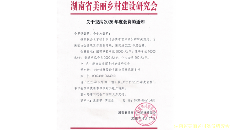 户 名:湖南省美丽乡村建设研究会